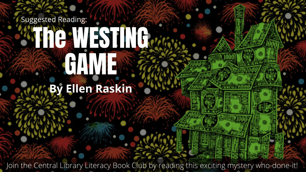 This month the Central Library Literacy Book Club has decided to challenge themselves with an award winning mystery novel, The Westing Game! This clue-riddled book was written by Ellen Raskin and published in 1978. The Westing Game has had a place on our library’s bookshelves ever since!